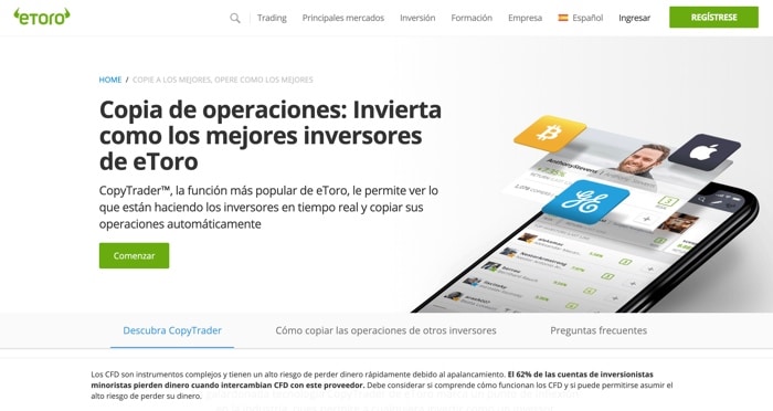 Una plataforma de gran éxito en todo el mundo, eToro ha sido un líder global en las operaciones de Forex con CFDs durante años.